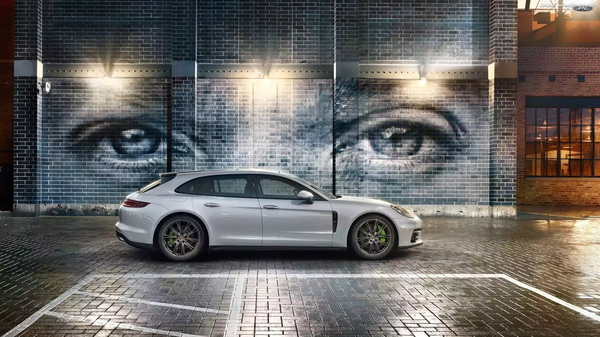 2017, Street art, Porsche Panamera 4 Sport Turismo, Ściana- Zdjęcia samochodów