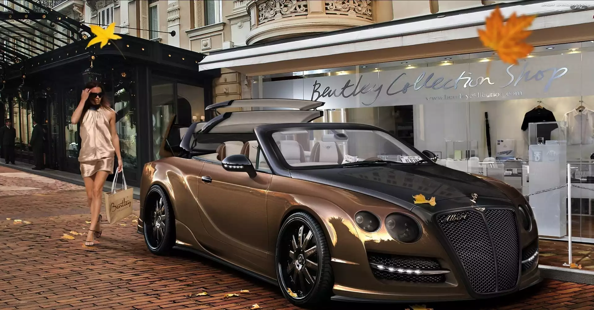 Samochód: Kobieta, Moda, Bentley, Złoty, Modelka