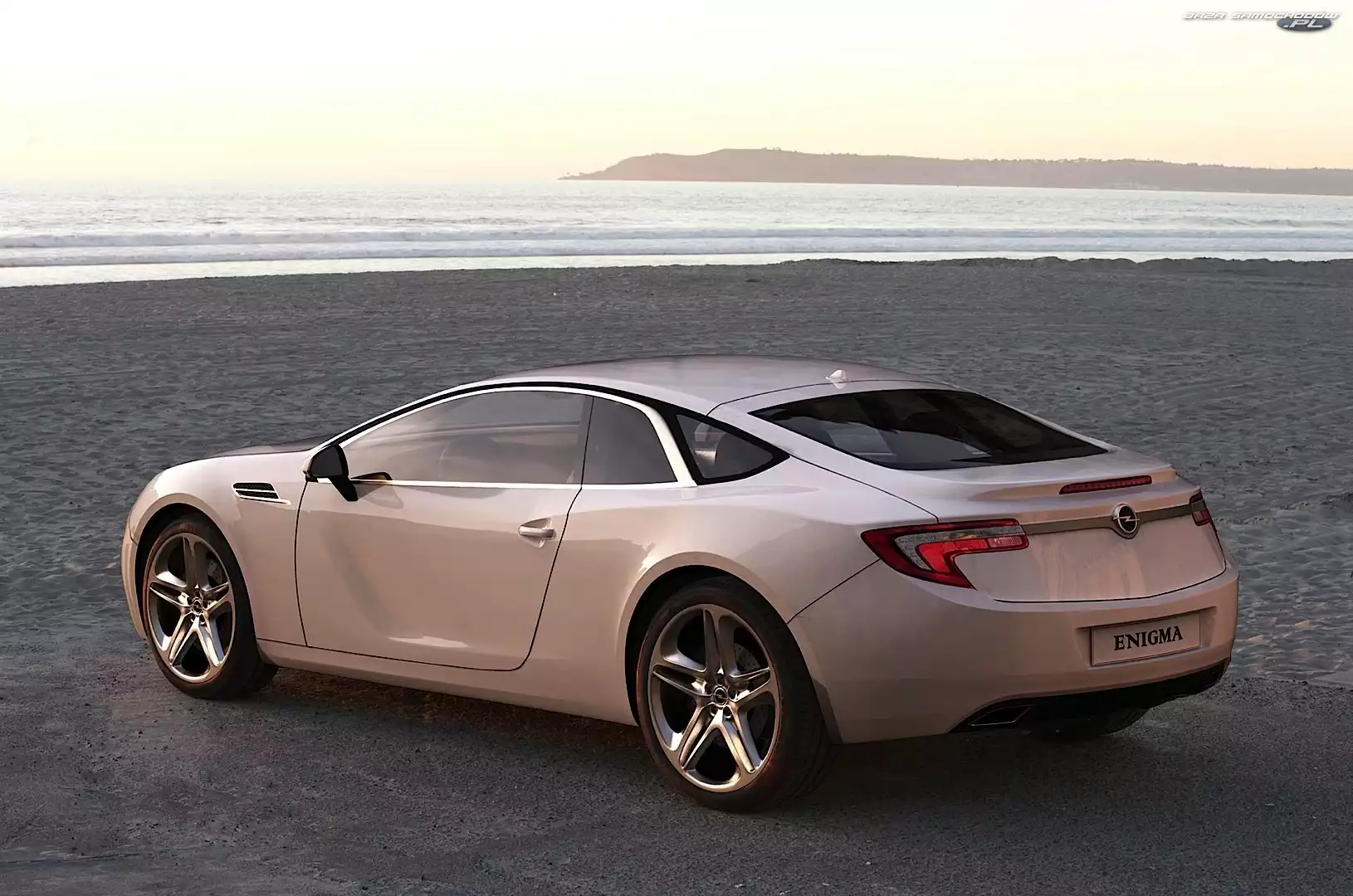 Morze, Plaża, Opel, Biały, Enigma- Zdjęcia samochodów
